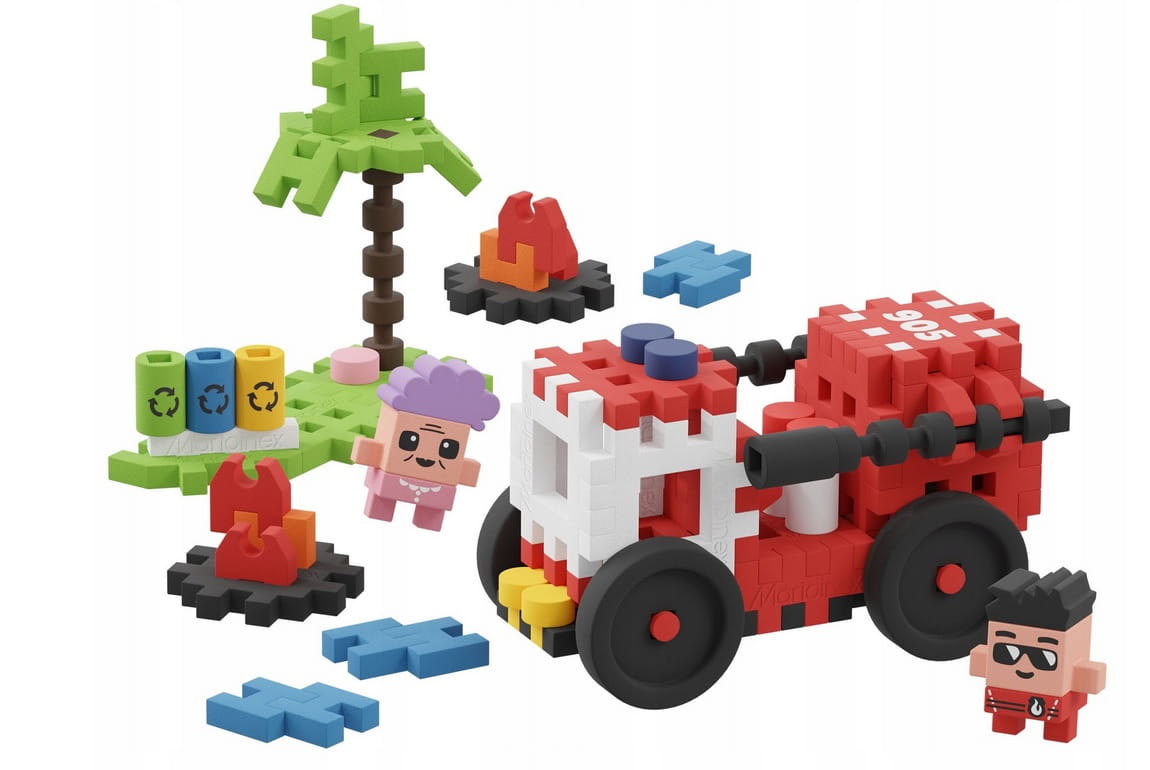 Wzbogać miasteczko Waffle City o skwer, wóz strażacki i dwie oryginalne postaci – panią Wandę i Strażaka Sama. Zbuduj niezawodny wóz strażacki, którym przy pomocy klocków imitujących wodę ugasisz niebezpieczne płomienie i ochronisz panią Wandę. A to z pewnością nie jedyna interwencja, na którą wyruszy strażak Sam. Stwórz własną historię podczas zabawy i rozwijaj wyobraźnię dziecka – również tę przestrzenną.