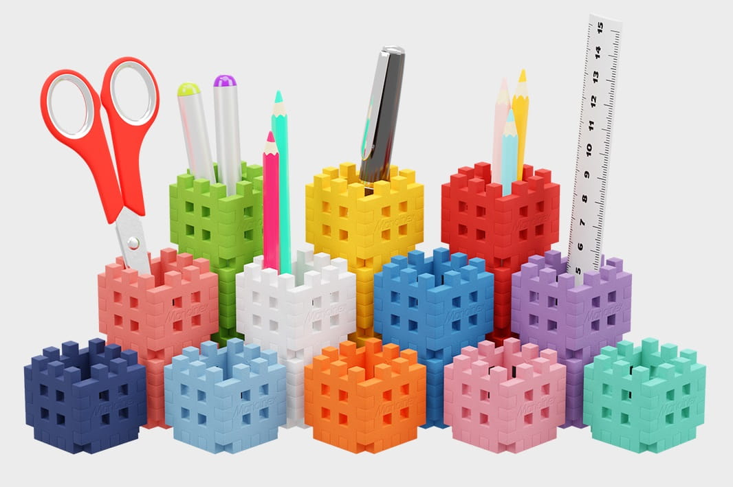Zbuduj własny przybornik, który będzie kreatywną i niezwykle praktyczną ozdobą biurka! Zestaw składa się z aż 140 elementów i stworzysz z nich 12 pojemniczków o różnej głębokości – pomieszczą one wszystkie niezbędne przybory szkolne.