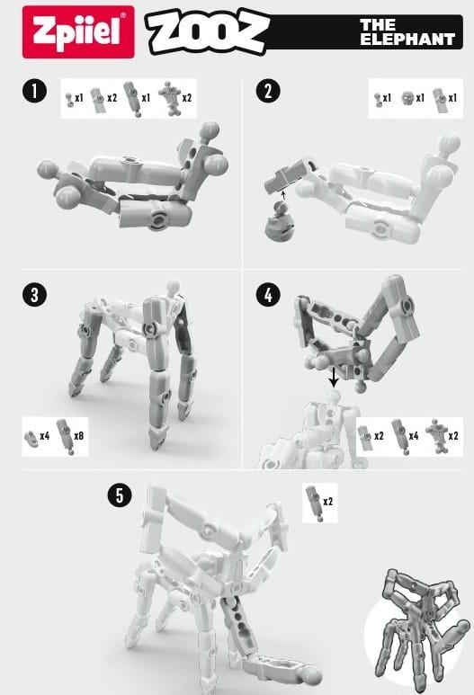 Czy chciałbyś być zwierzakiem słonia? Słoń jest dostarczany z instrukcją budowy, która szczegółowo opisuje, jak go złożyć.
