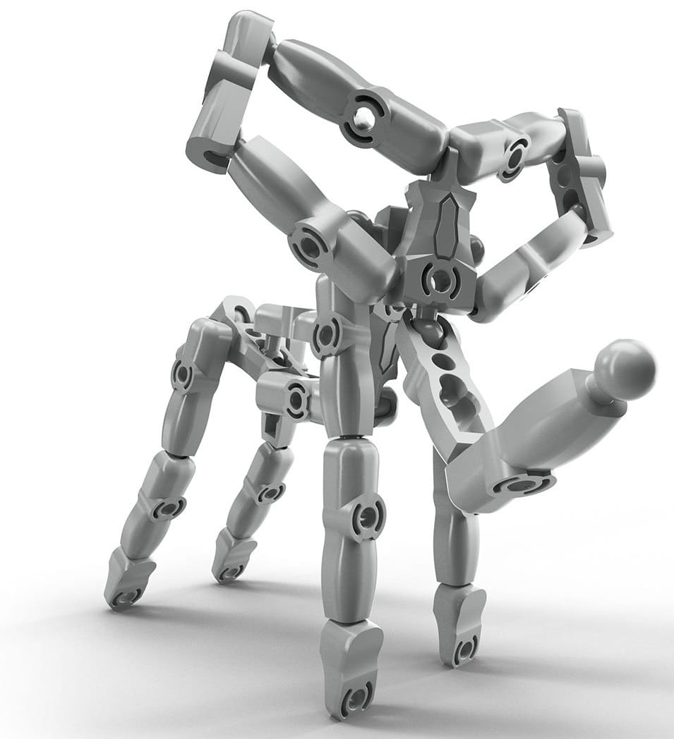 - System przegubów kulowych, który ożywia kreacje
