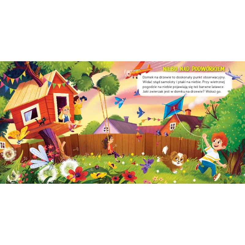 Popatrz w górę. Co widzisz? Ptaki, kota na dachu, samolot, barwną tęczę, a może lecący balon? „Co zobaczę na niebie” to propozycja dla najmłodszych czytelników. Maluchy odkryją w niej tajemnice podniebnego świata oglądanego z różnych miejsc.