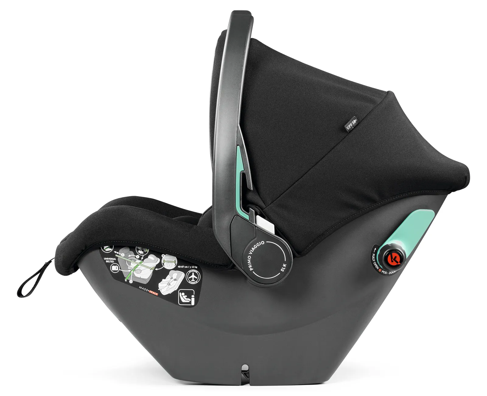 Primo Viaggio SLK to fotelik samochodowy z homologacją i-Size zgodną z nowym standardem ECE R129/03. Dzięki niemu dziecko może dłużej podróżować tyłem do kierunku jazdy - aż do 87 cm wzrostu i 13 kg wagi. Model spełnia również normy do podróży samolotem.