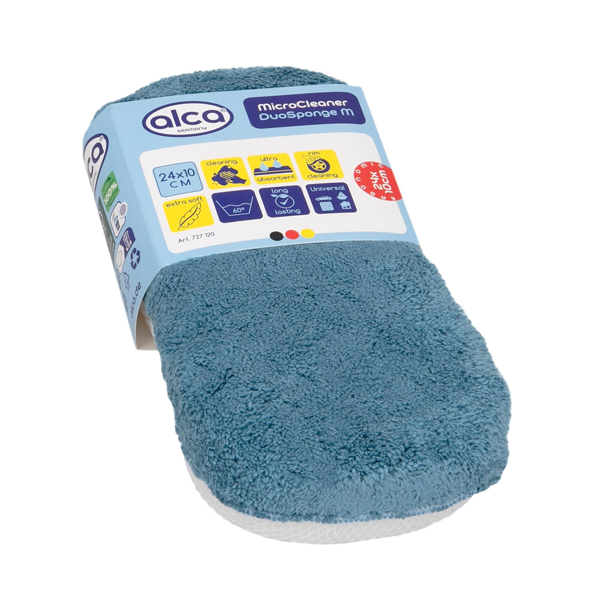 Gąbka alca MicroCleaner DuoSponge M to wysokiej jakości gąbka z mikrofibry, która idealnie leży w dłoni dzięki poręcznym wymiarom 24 x 11 cm.