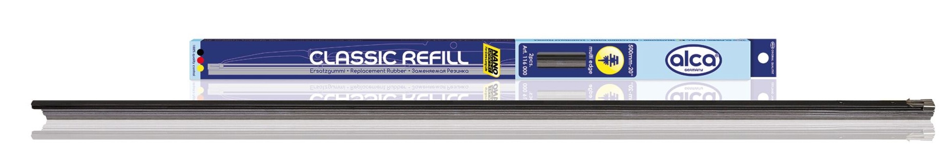 Nadaj swojemu pojazdowi nowy blask dzięki wymiennym gumkom Alca Rubber REFILL 20"/500 mm (zestaw 2 szt.) o wielu krawędziach.