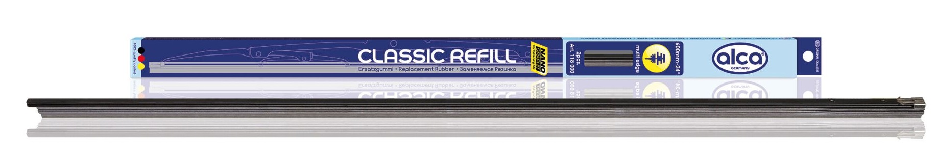 Nadaj swojemu pojazdowi nowy blask dzięki wymiennym gumkom Alca Rubber REFILL 24"/600 mm (zestaw 2 szt.) o wielu krawędziach.