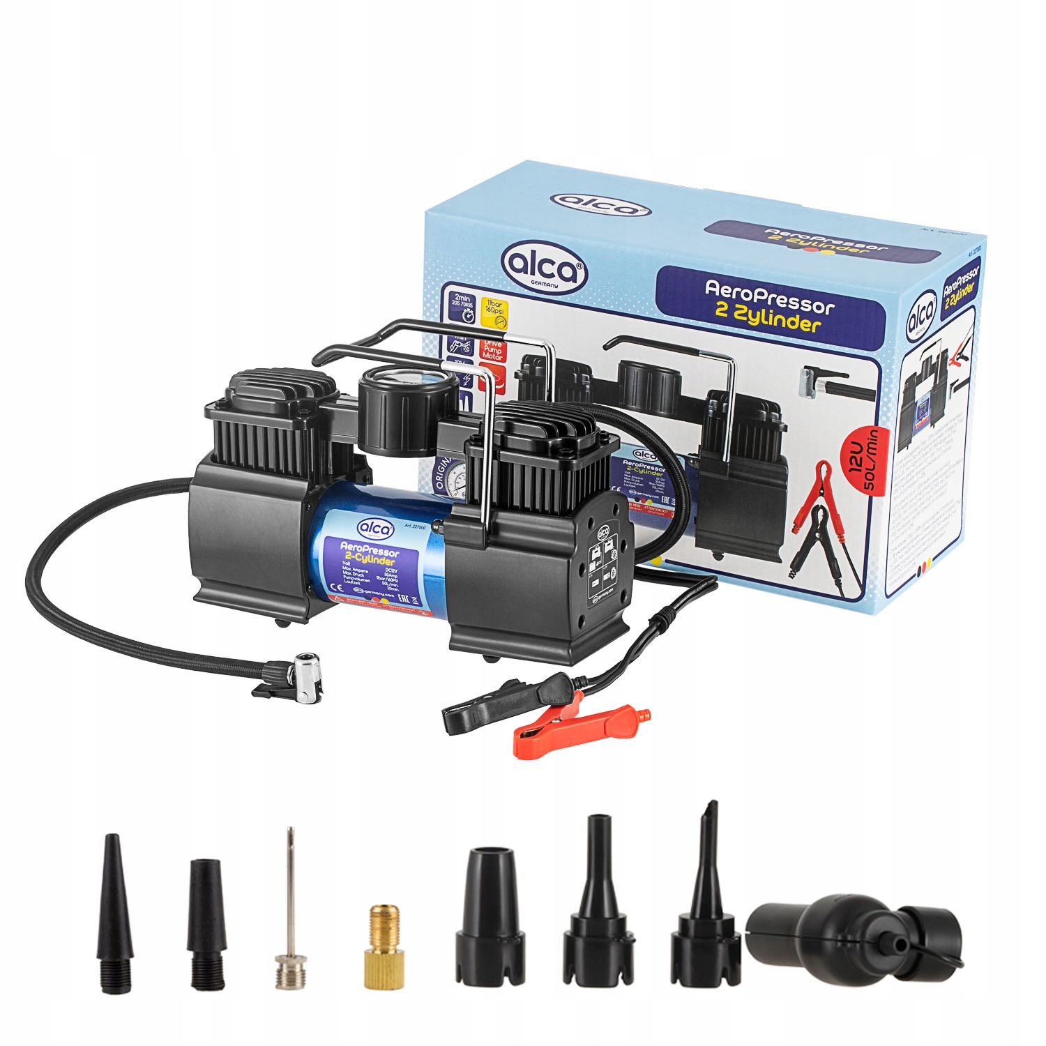 Doskonała 2-cylindrowa sprężarka mocy alca 12 V to akcesorium samochodowe, które szczególnie nadaje się do pojazdów 4x4, SUV, VAN, ciężarówek i kempingów.