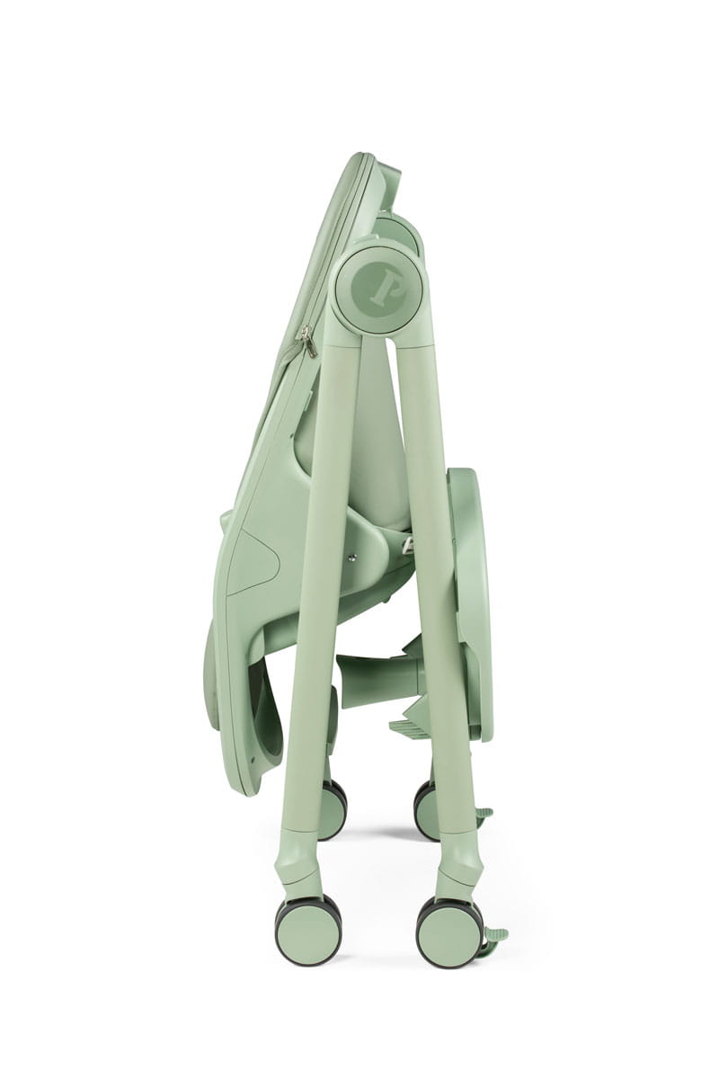 Krzesełko Living wyposażone zostało w innowacyjny system składania z przyciskami na bocznych złączach. Po złożeniu krzesełko jest niezwykle kompaktowe i pozostaje w pozycji pionowej nawet z wpiętą tacką.