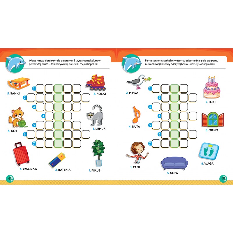 Krzyżówki obrazkowe z wesołym delfinkiem 6+