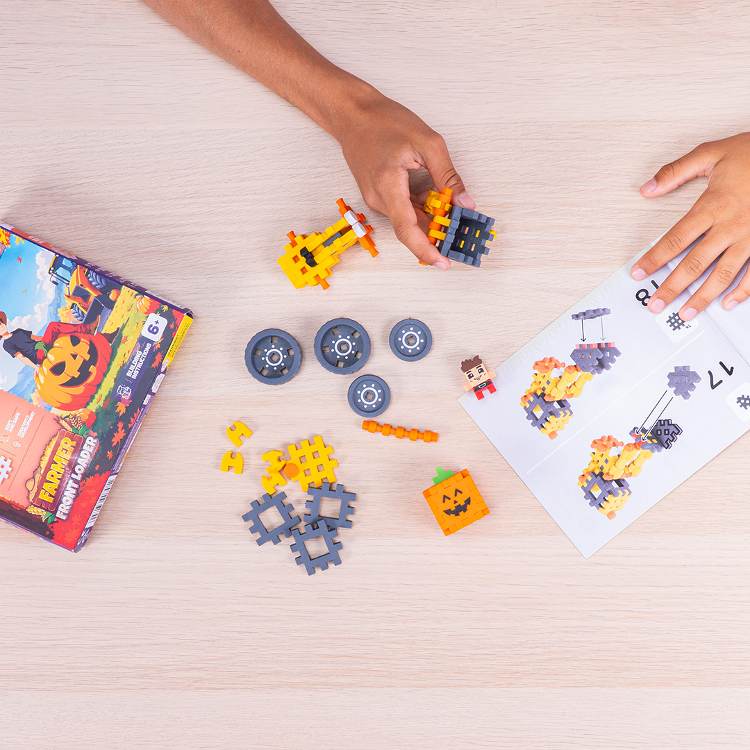 W zestawie znajduje się 50 elastycznych, kolorowych elementów, z których można zbudować efektowny model koparki oraz figurkę Freddy’ego. Ruchome ramię łyżki i duże koła sprawiają, że pojazd wygląda jak prawdziwy i zapewnia jeszcze więcej radości z zabawy.