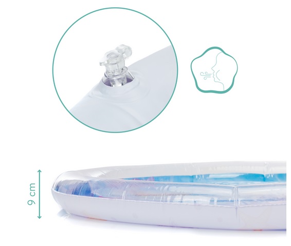 Miękka, wypełniona wodą powierzchnia do leżenia i nadmuchiwany brzeg zapewniają Twojemu dziecku bezpieczeństwo i wygodę.