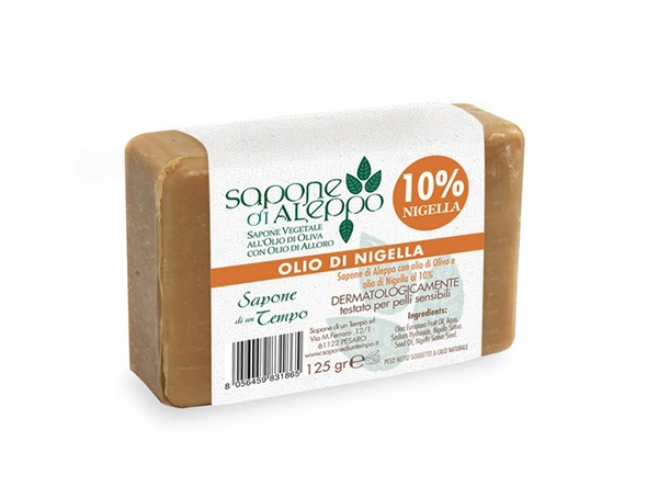 Mydło z Aleppo - Liść Laurowy 10% i olej z czarnuszki marki Sapone di un Tempo to produkt czysty i naturalny, bez konserwantów. Nadaje się do każdego rodzaju skóry.