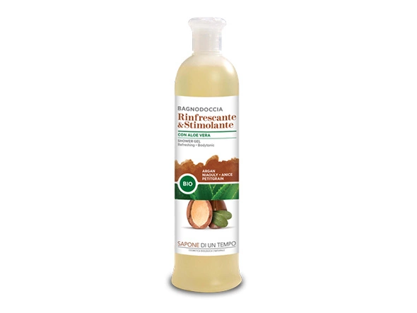 Odświeżający i stymulujący żel do mycia ciała Argan o działaniu odświeżającym i stymulującym, delikatnie oczyszczający skórę. Zawiera sok z aloesu, uprawianego ekologicznie; olej arganowy olej wiecznej młodości, który dzięki zawartości substancji przeciwutleniających, flawonoidów i kwasów tłuszczowych ma właściwości uelastyczniające, nawilżające i odżywcze; olejek eteryczny z niaouly, doskonały środek antyseptyczny i stosowany w aromaterapii w celu odzyskania spokoju i pogody ducha;olej anyżowy, o dobrze znanych właściwościach relaksujących, zmniejszających przekrwienie i oczyszczających; olejek eteryczny petitgrain, który oprócz działania antyseptycznego i przeciwzapachowego pomaga przywrócić równowagę układ nerwowy oraz odświeża ciało i umysł. Podaruj sobie chwilę naturalnej przyjemności i dobrego samopoczucia.