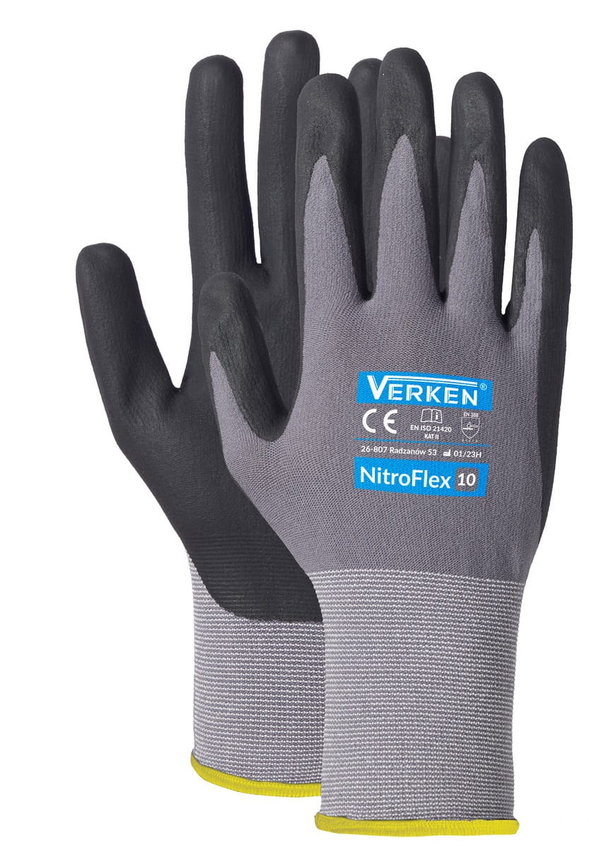 NitroFlex to nowoczesne rękawice ochronne zaprojektowane z myślą o wysokim komforcie pracy, elastyczności i przyczepności. Dzięki zastosowaniu oddychającej tkaniny ze spandexu i powleczeniu spienionym nitrylem (foam), sprawdzają się w wymagających warunkach pracy, gdzie potrzebna jest zręczność, precyzja i ochrona przed ścieraniem.