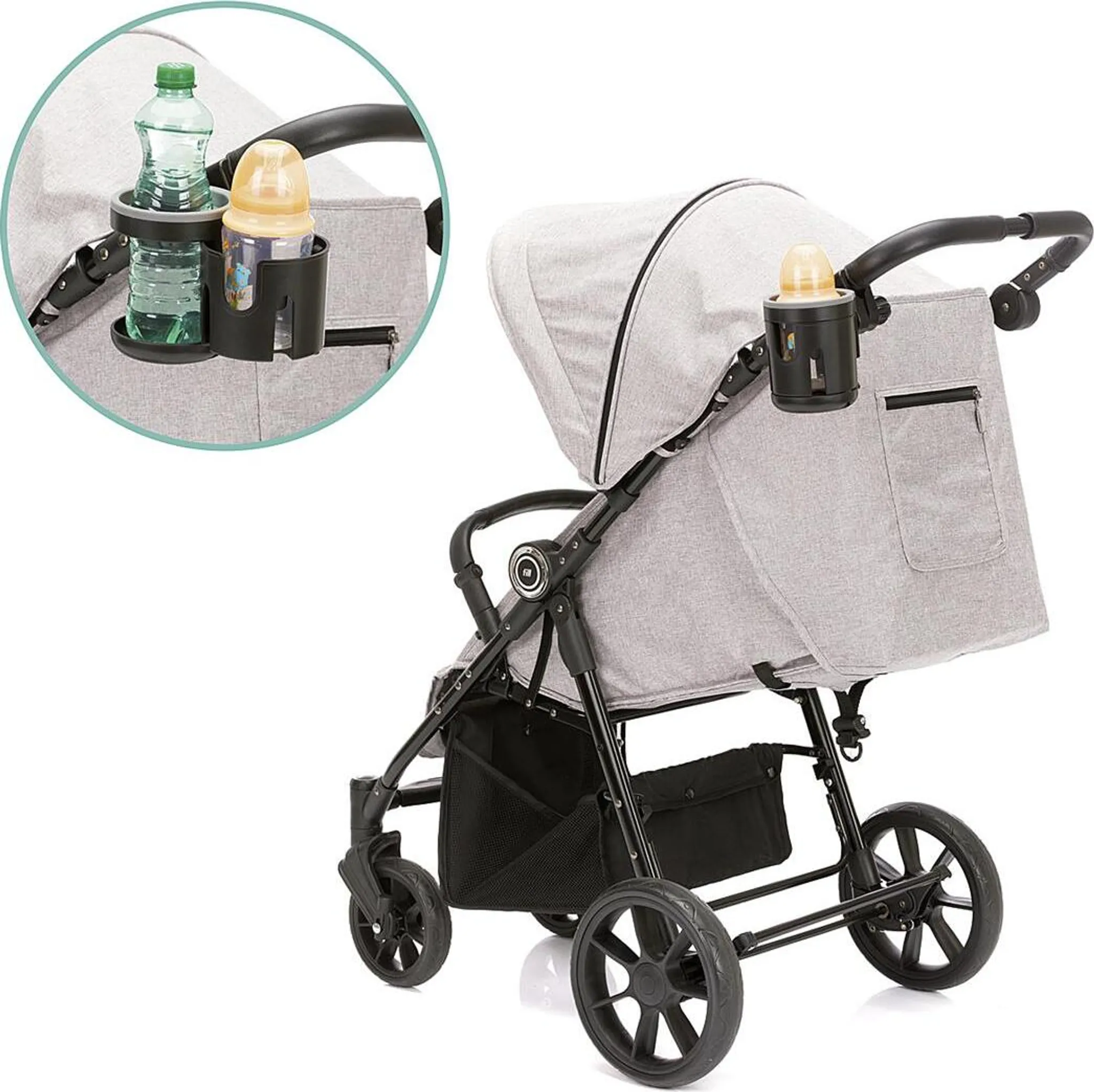 Dzięki naszemu praktycznemu uchwytowi na butelki do wózków dziecięcych zawsze masz wszystko pod kontrolą w podróży.