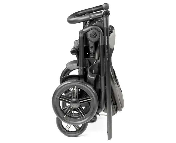 Spacerówka Veloce TC to niezwykle kompaktowy i lekki wózek o szerokości 57 cm i wadze 11,7 kg. Gumowe koła zostały wykończone odblaskowymi elementami dla lepszej widoczności. Zastosowany system Soft-Ride, łożyska kulkowe oraz bardzo dobra regulowana amortyzacja w dwóch trybach SOFT dla leśnych spacerów i nierównego terenu oraz HARD dla miejskich chodników i gładkich powierzchni zapewniają komfortową jazdę w każdym terenie. Przednie koła o średnicy 20 cm obracają się w zakresie 360º po zniesieniu blokad w nadkole. Między dużymi tylnymi kołami o średnicy 28 cm znajduje się dźwignia hamulca.