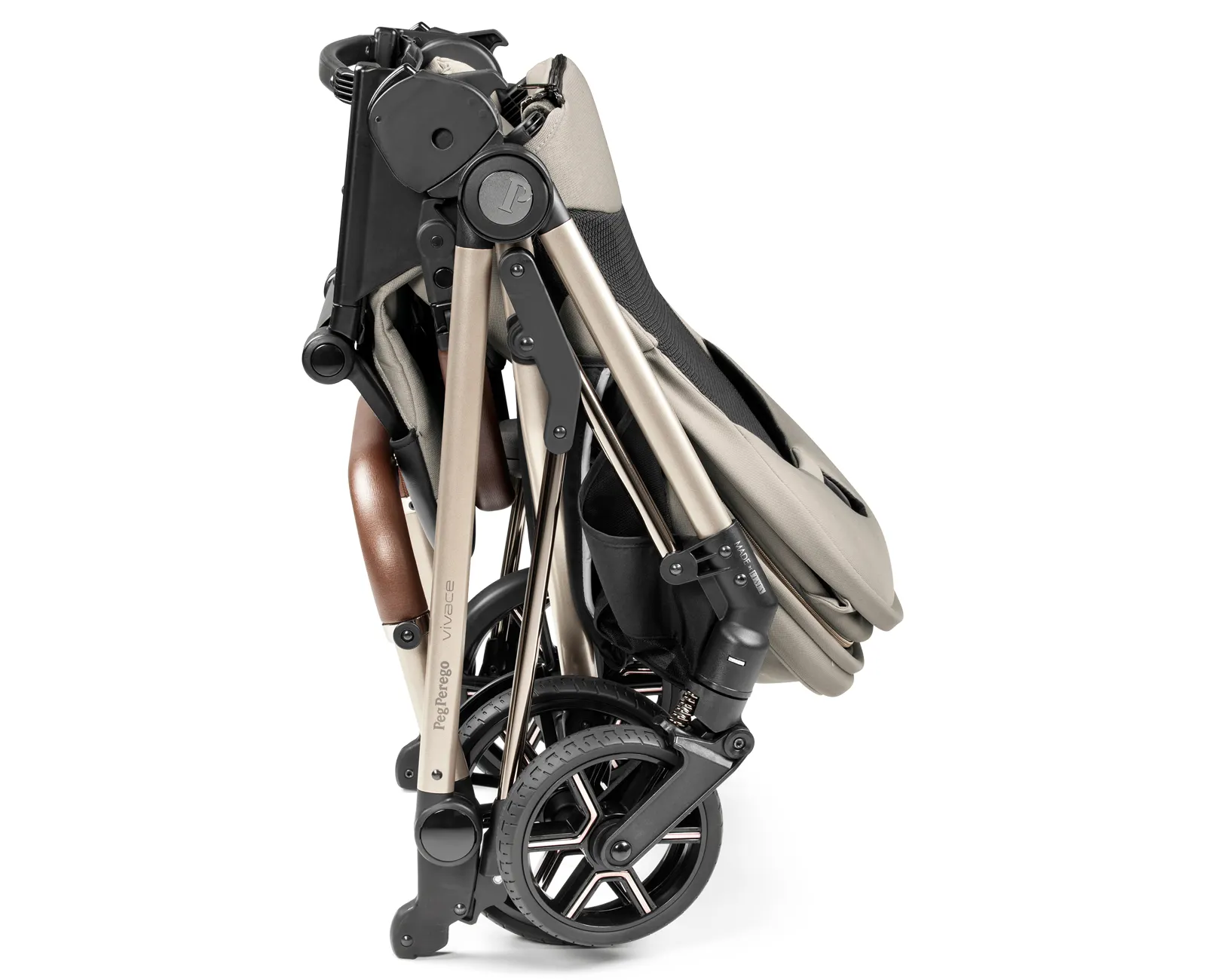 Vivace to lekki i kompaktowy wózek spacerowy z przekładanym siedziskiem. Produkt może być łączony z gondolką i fotelikiem samochodowym, dlatego stanowi doskonałe rozwiązanie dla dzieci od narodzin aż do 22 kg wagi. Vivace waży tylko 9,4 kg i ma jedynie 51 cm szerokości, dzięki czemu idealnie sprawdzi się w wąskich miejskich alejkach.
