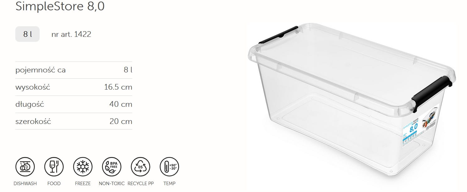 Pojemnik do przechowywania o wysokiej jakości wykonania. Przezroczysty pojemnik umożliwia rozpoznanie zawartości bez konieczności otwierania.