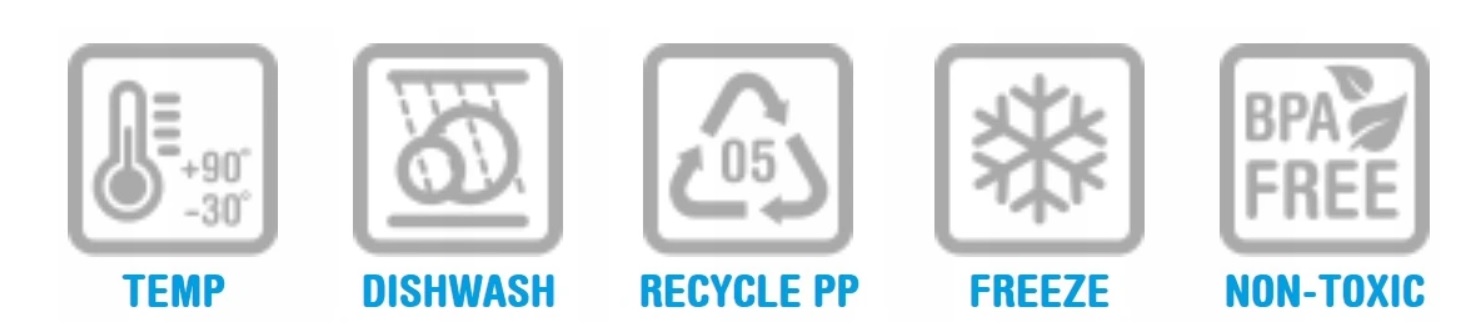 - Pojemniki można przechowywać w lodówce, zamrażarce oraz myć w zmywarce