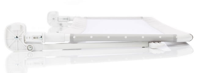 Dzięki unikalnemu mechanizmowi składania barierki łóżka można złożyć w ciągu dnia i ustawić w pozycji pionowej w nocy.