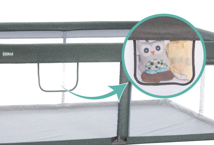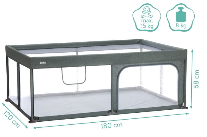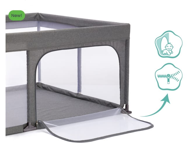 Dzięki imponującym rozmiarom tworzy chronioną przestrzeń, w której Twój mały odkrywca może się swobodnie poruszać. Cechą wyróżniającą ten kojec jest boczne wejście. Twoje dziecko może samodzielnie wchodzić i wychodzić z kojca, promując tym samym swoją niezależność i jednocześnie poszerzając obszar zabawy. Przestronne wnętrze kojca Rio XL zapewnia wystarczająco dużo miejsca na zabawki i przygody.