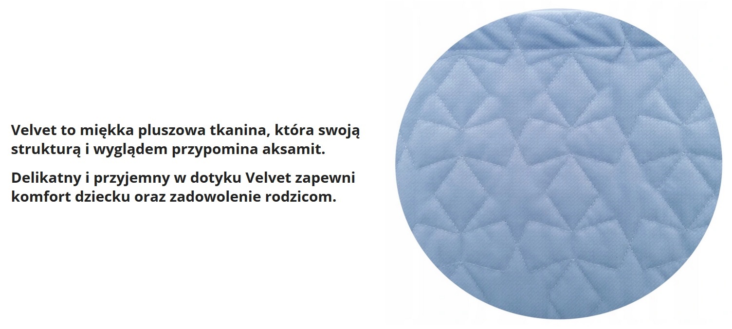 Odpowiedni skład – połączenie delikatnej tkaniny Velvet 100% poliester i miękkiego jerseyu 100% bawełna.