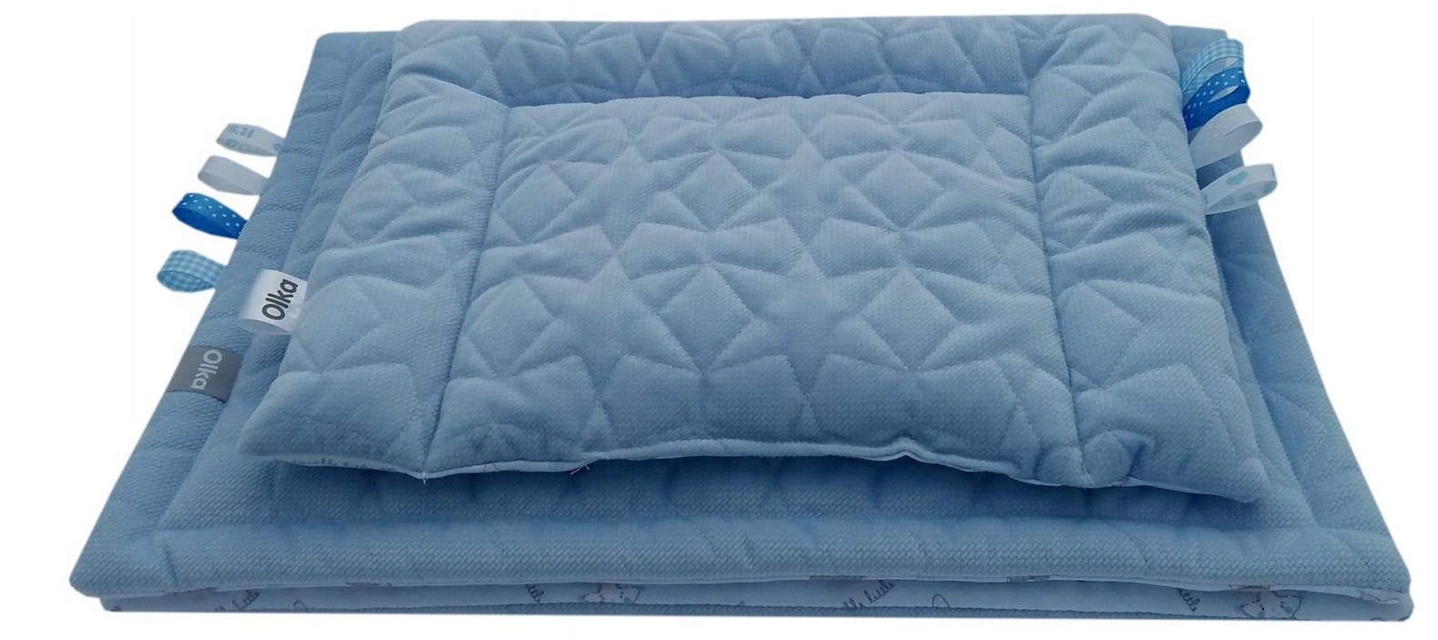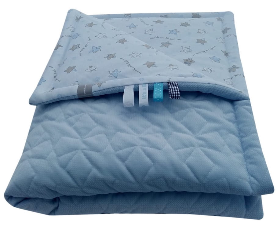 - w kocykach zostały doszyte kolorowe tasiemki - sensorki, które pobudzają wyobraźnię dziecka.