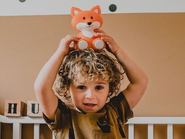 Wygląda na to, że lisek Robin wyszedł ze swojej norki by w nocy czuwać nad spokojnym snem dzieci. Lampka dziecięca marki Flow Amsterdam to bezwzględny must have w każdym pokoju dziecięcym! Lampka LED Lisek Robin posiada unikalny prosty a przy tym fajny design, charakteryzuje się brak ostrych krawędzi, ma ergonomiczny kształt, jest miękka co sprawia, że jest idealną lampką dla dzieci. Lampką, którą dzieci mogą bezpiecznie przytulać, zanim zasną! Włącza się po naciśnięciu przycisku ON/OFF a zmienia kolor światła po klepnięciu Robina po grzbiecie. Wyłącza się automatycznie po 15 minutach, lecz w przypadku przytrzymania przycisku ON/OFF przez 5 sekund funkcja automatycznego wyłączania jest nieaktywna, wówczas lampka świeci się cały czas. Dzięki lampce LED Lisek Robin dziecko już nigdy nie będzie bało się ciemności. Lampka doskonale nadaje się na prezent.