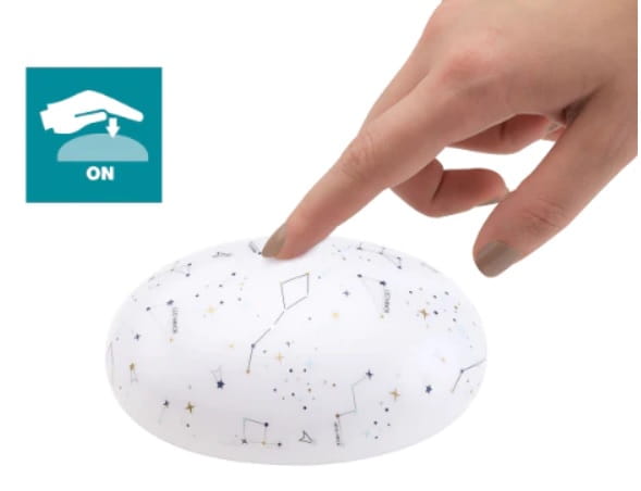 Lampka nocna Sleepy rzuca miękkie, tęczowe światło do pokoju Twojego malucha. Pomaga to dziecku zrozumieć otaczający go świat w ciemności. Aby włączyć lampkę nocną Sleepy, nie ma nic prostszego. Naciśnij na górze, a włączy się dzięki technologii „Tap & Light”.