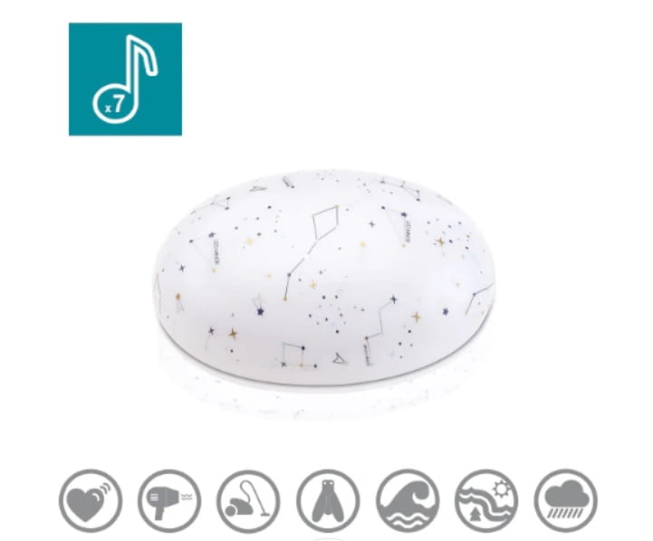 Aby Ci pomóc, lampka nocna pomaga w rytuale przed snem Twojego dziecka. Uspokaja dziecko i pomaga mu zasnąć. Prawdopodobnie słyszałeś o białym szumie i jego korzyściach dla snu? To dobrze, ta lampka nocna dla dziecka rozprasza białe dźwięki, ale także różowe i miękkie dźwięki zaczerpnięte z natury. Maluch zasypia przy szumie odkurzacza, plusku wody czy bicie serduszka...