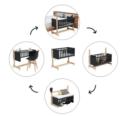 Łóżeczko Dostawka 5w1 Grafit Osann