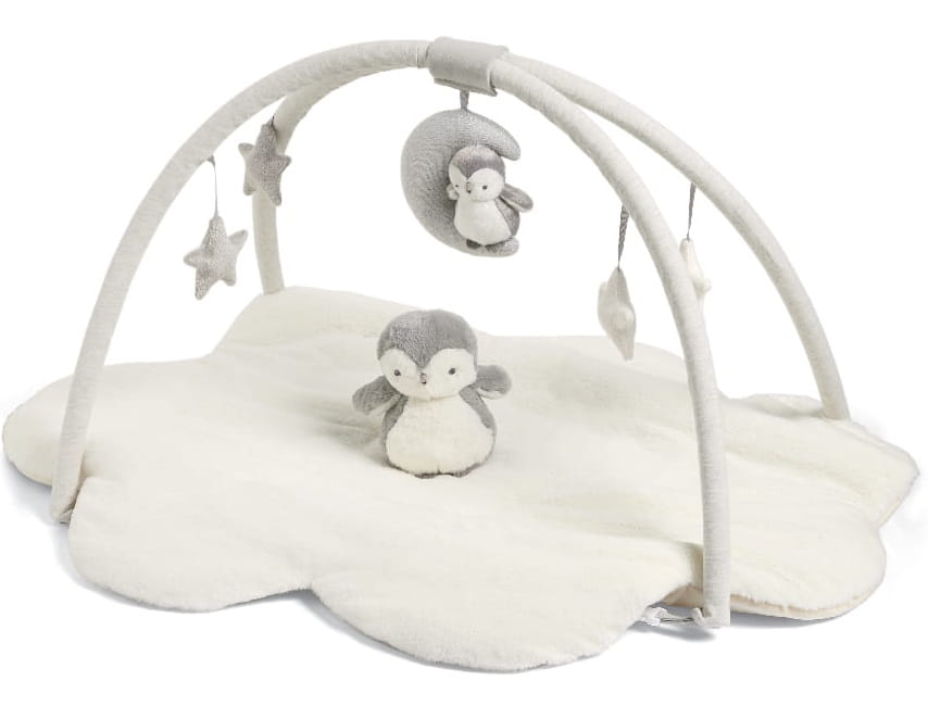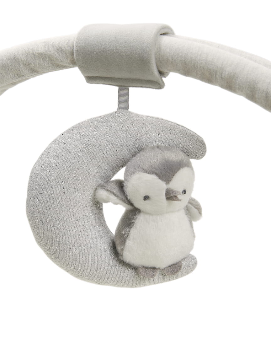 Mata edukacyjna Playmat and Gym zawiera szereg ukrytych funkcji, takich jak marszczone tekstury zawieszek, wspomagające rozwój zmysłu dotyku i uczące dziecko rozpoznawania różnych powierzchni. Mięciutki Pingwinek, może stać się ukochaną, pierwszą przytulanką Twojego Maluszka. Jest tak słodki i uroczy, że nie będzie chciał się z nim rozstawać. Zdejmowane pałąki wyposażone zostały w odczepiane zabawki muzyczne, zapewniające rozrywkę, pozwalające na poznawanie dźwięków i angażujące zmysły oraz zwiększające koordynację ruchów.
