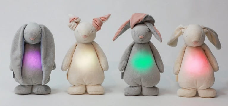 Każdy szumiący królik MOONIE jest też lampką nocną, która może świecić na 7 różnych odcieni.