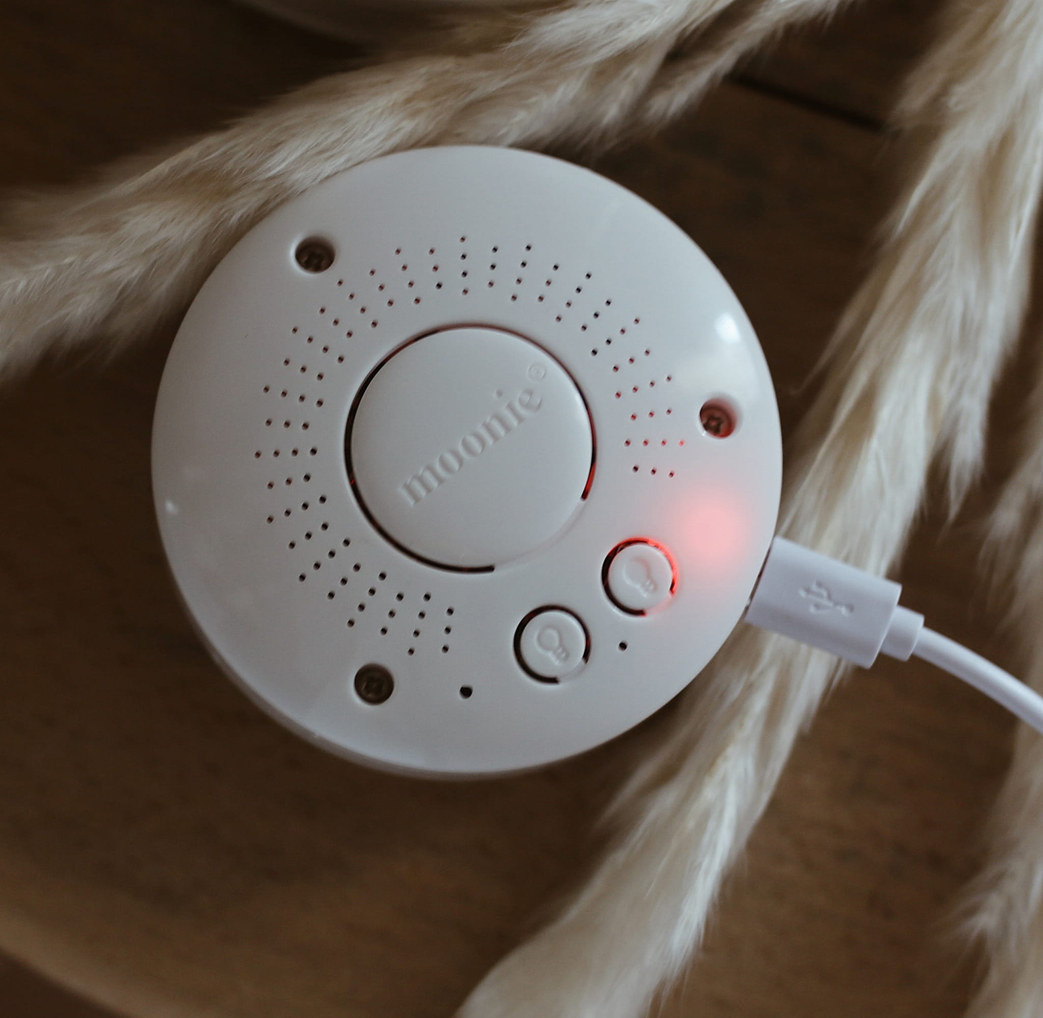 Włączona funkcja inteligentnego czujnika płaczu czuwa nad spokojnym snem maluszka. Gdy tylko dziecko przebudzi się i zacznie płakać, szumiący króliczek MOONIE uruchamia bezpieczny, naturalny różowy szum i wycisza maleństwo.