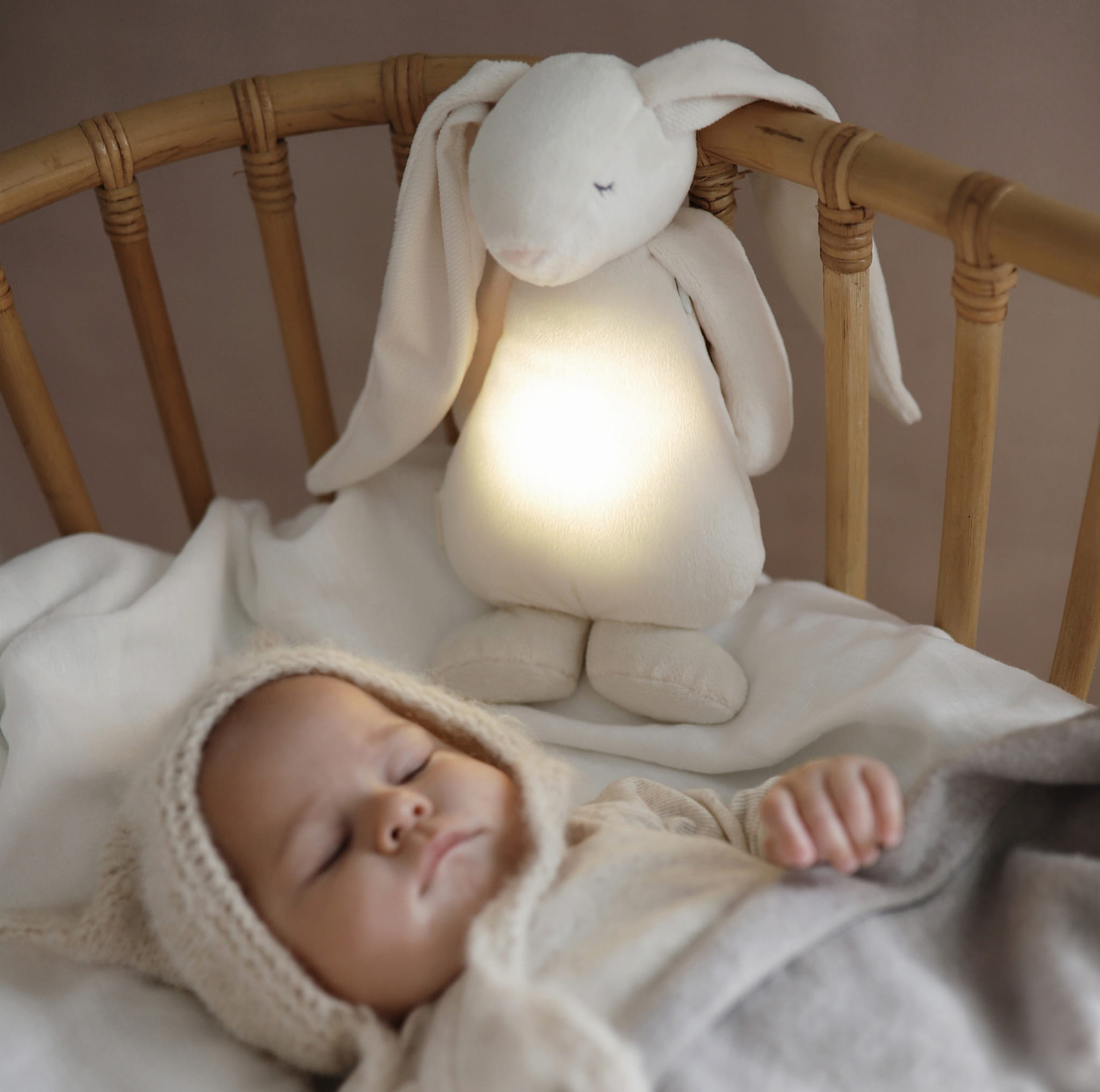 Szumiący króliczek MOONIE zawsze wycisza się po 30 minutach i automatycznie przechodzi 3 godzinny w tryb czuwania.