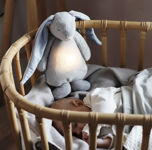 Inteligentny czujnik płaczu zapamiętuje ostatnie ustawienie szumu i światła. Można więc tak zaprogramować szumiącego króliczka MOONIE aby po ponownym uruchomieniu odtworzył ulubione ustawienia lampki i dźwięku lub samego dźwięku.