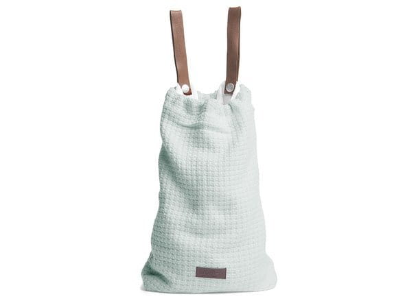 Praktyczny, duży wiszący worek na zabawki, pluszaki, poduszki, bieliznę i piżamę. Worek posiada ściągacz oraz dwa zapinane na zatrzask uchwyty wykonane z ekologicznej skóry, dzięki którym łatwo worek będzie można zawiesić przy dziecięcym łóżeczku lub w innym dogodnym miejscu dziecięcego pokoju.