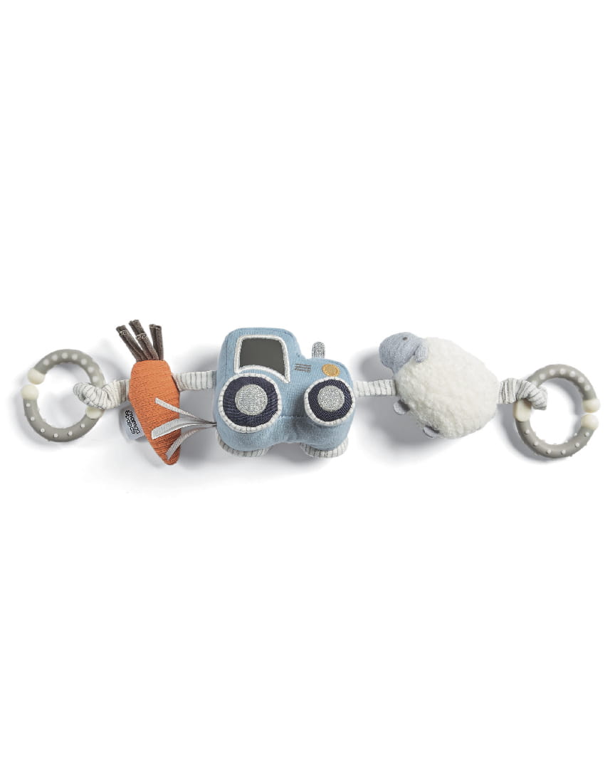 Zawieszka Mamas&Papas Traktor zajmie uwagę Twojego dziecka podczas podróży czy wówczas, gdy będziesz zajęta wykonywaniem codziennych, domowych czynności. Przyczepiona do gondoli bądź wózka, uprzyjemni każdy spacer. Estetycznie wykonany miękki traktor, puszysta owieczka i wyrazista marchewka okażą się wprost idealne do przytulania oraz zabawy.