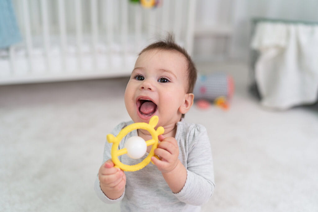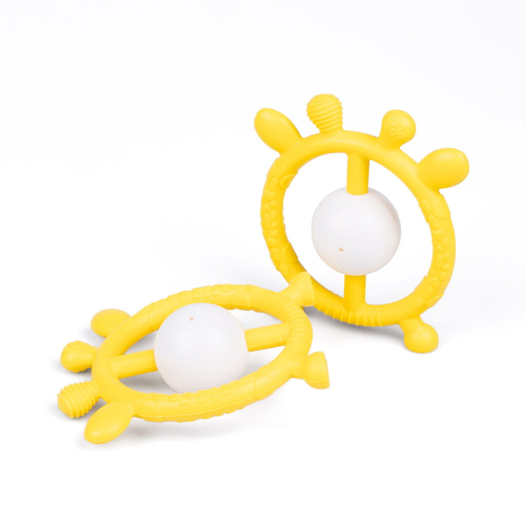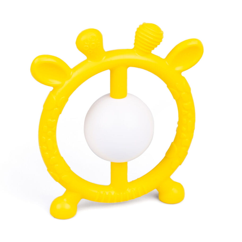 Gryzaczek i grzechotka w jednym! Ten wesoły jelonek w pięknym, słonecznym kolorze przyniesie ulgę ząbkującemu maluszkowi. Zróżnicowane faktury gryzaka delikatnie masują dziąsła, a jego kształt ułatwia małym rączkom chwytanie zabawki.