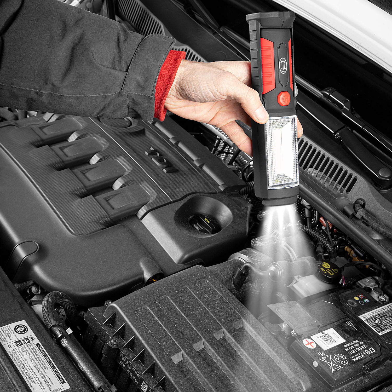 Wysokiej jakości, bardzo mocna i jasna lampa wielofunkcyjna LED Przeznaczona do profesjonalnego użytkowania w warsztatach samochodowych a także w samochodzie, na campingu lub w warunkach domowych.