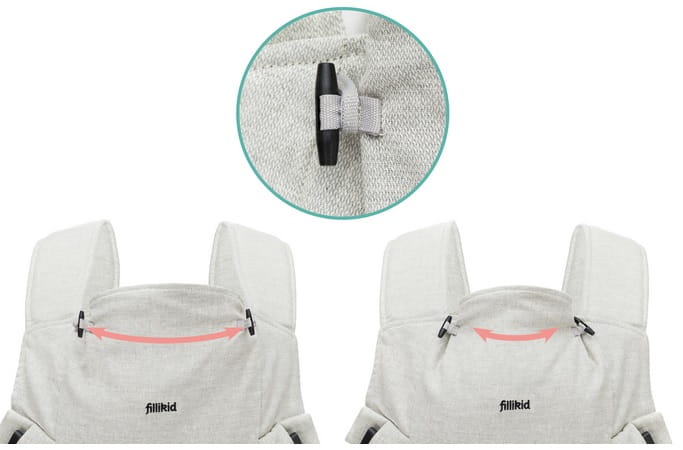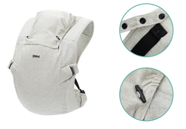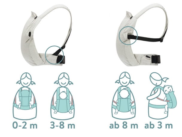 Paski można nosić skrzyżowane (nasz osobisty faworyt) lub proste jak w plecaku. Kiedy Twoje dziecko jest już wystarczająco duże, możesz używać nosidełka także jako nosidełka na plecy. Łatwo dostępne klamry pasa biodrowego i klapy umożliwiają wygodne zakładanie nosidełka bez pomocy. Aby głowa dziecka była dobrze podparta i chroniona przed słońcem i wiatrem podczas noszenia, w zestawie znajduje się praktyczny zagłówek.