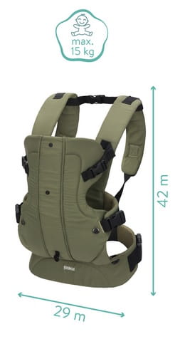 Nosidełko jest łatwe w użyciu i można je regulować za pomocą zatrzasków po bokach i z tyłu, dzięki czemu możesz nosić swoje maleństwo blisko siebie od około 3 miesięcy do około dwóch lat.