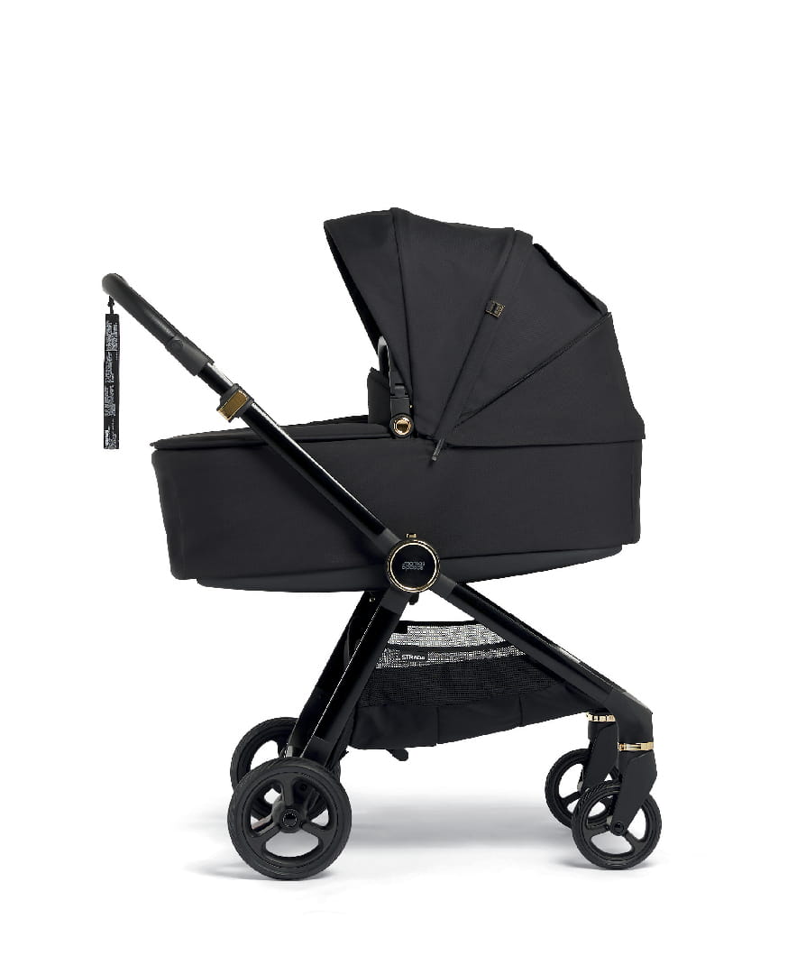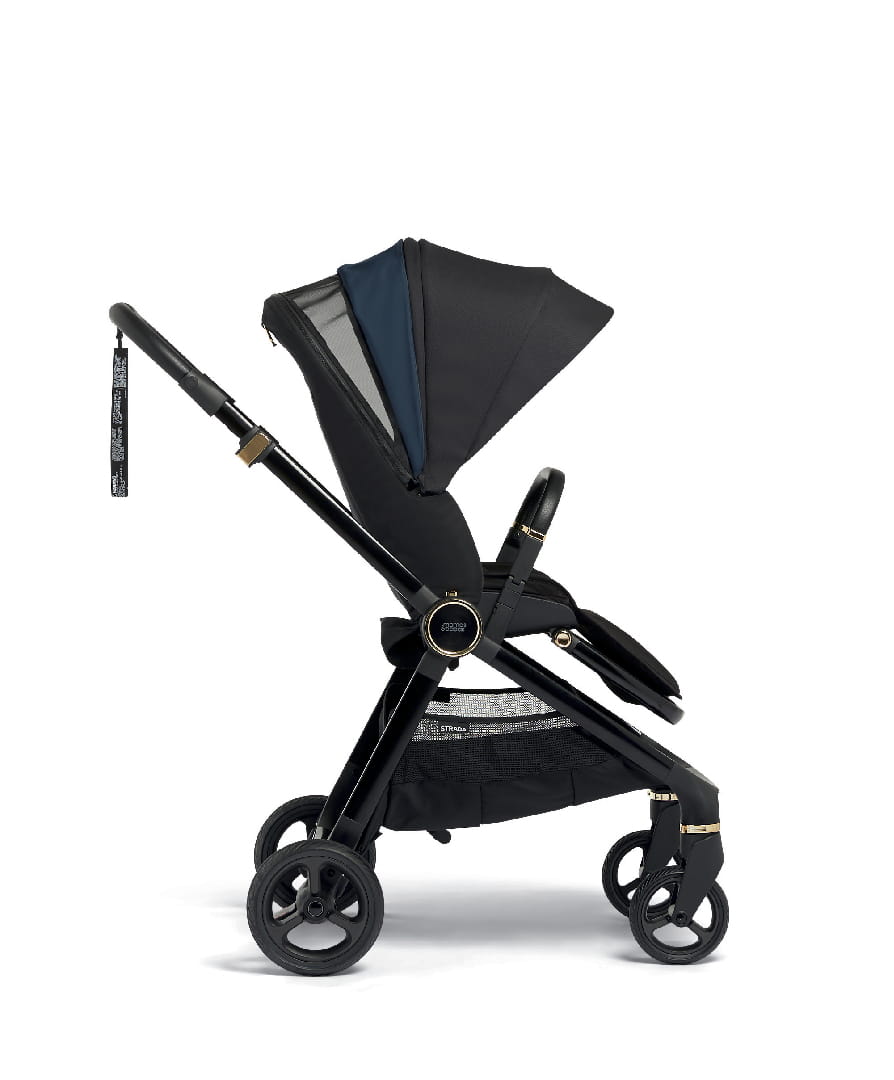 Wózek spacerowy Mamas&Papas Strada Black Diamond to jedna z najnowszych propozycji brytyjskiej marki Mamas&Papas, specjalizującej się w produkcji artykułów dla najmłodszych klientów. Model Strada Black Diamond charakteryzuje się nowoczesnym designem, lekkością, eleganckim wyglądem i wielofunkcyjnością. Wózek jest kompatybilny z fotelikami samochodowymi i gondolą do głębokiego wózka z tej samej kolekcji, gdyż idealnie pasuje do systemu podróżnego z adapterami Strada. Projektanci tego modelu zaopatrzyli go we wszystkie niezbędne funkcje, by każdy spacer odbywał się w sposób bezproblemowy, komfortowy i bezpieczny. Wózek można złożyć jedną ręką do niewielkich, kompaktowych rozmiarów i z łatwością przechować nawet w małym mieszkaniu czy bagażniku samochodu. Pojazd rośnie wraz z dzieckiem, gdyż dedykowany jest maluchom od urodzenia aż do osiągnięcia przez nie wagi ok. 15 kg.