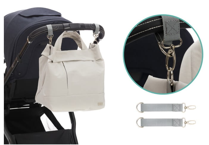 Torbę można łatwo nosić w ręku lub nosić swobodnie na ramieniu dzięki dodatkowemu regulowanemu paskowi. Dołączone klipsy mocujące pozwalają wygodnie przymocować torbę do wózka, zmniejszając obciążenie.