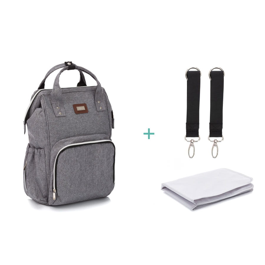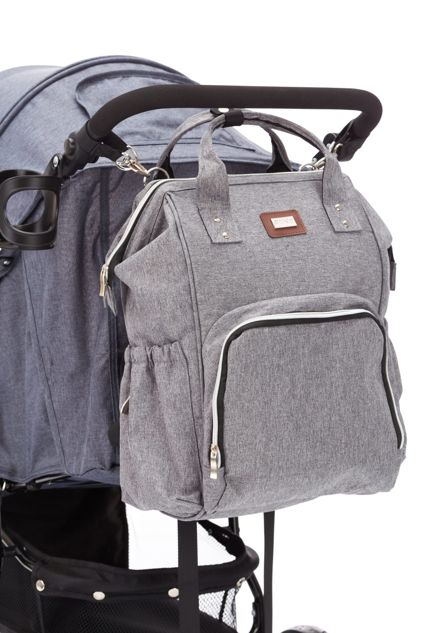 Ten wszechstronny plecak uzupełniają dołączone 2 paski z haczykami , dzięki czemu plecak można łatwo przymocować do rączki wózka spacerowego!