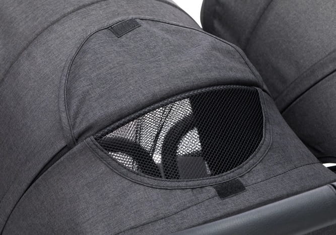 Niezależnie regulowane w 4 pozycjach oparcie i podnóżek zapewnią Twoim dzieciom zrelaksowaną pozycję do spania. Dzięki wyściełanym 5-punktowym pasom bezpieczeństwa Twoje dzieci będą zawsze bezpieczne w podróży. Każdy daszek przeciwsłoneczny ma okienko z siateczki zapewniające optymalną wentylację i pozwala mieć dziecko na oku.