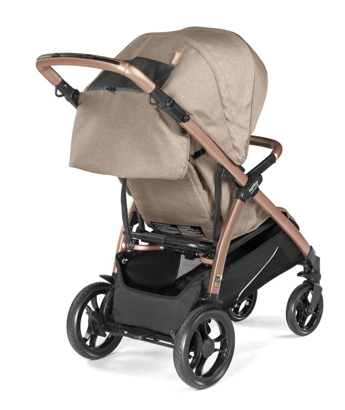 Pałąk wózka wykonany został ze skóry ekologicznej i posiada regulację, dzięki której można zastosować pozycję otwartą bądź półotwartą. Pełna rączka posiada specjalne wypustki, dzięki którym wózek po złożeniu stoi samodzielnie, chroniąc lakier przed otarciami.
