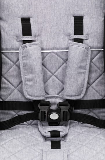 Dzięki wyściełanym 5-punktowym pasom i zdejmowanemu pałąkowi zawsze jesteś bezpieczny w podróży. Podczas postojów łatwy w użyciu hamulec postojowy gwarantuje, że wózek pozostanie niezawodnie nieruchomy.
