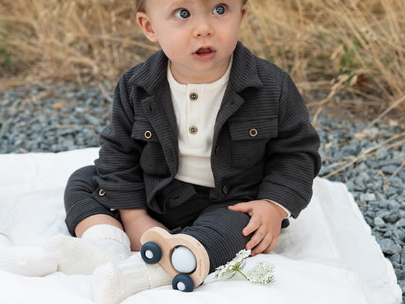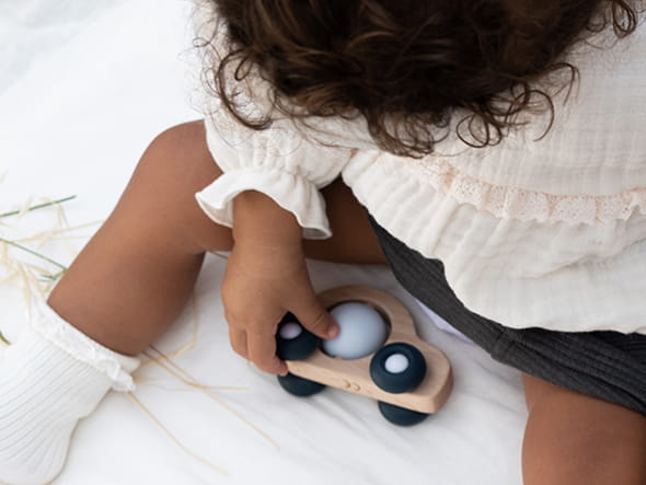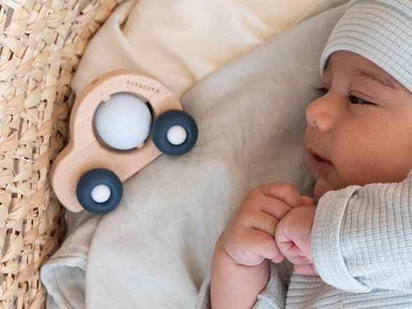Świetna zabawka autko marki Bamboom wykonana w 100% z naturalnego drewna i bezpiecznego silikonu. Idealna zabawka dla niemowlaka, ale także dla starszego dziecka. Posiada silikonowe element, które dziecko może gryźć. Drewniano-silikonowa zabawka dla dziecka to idealny prezent na baby shower.