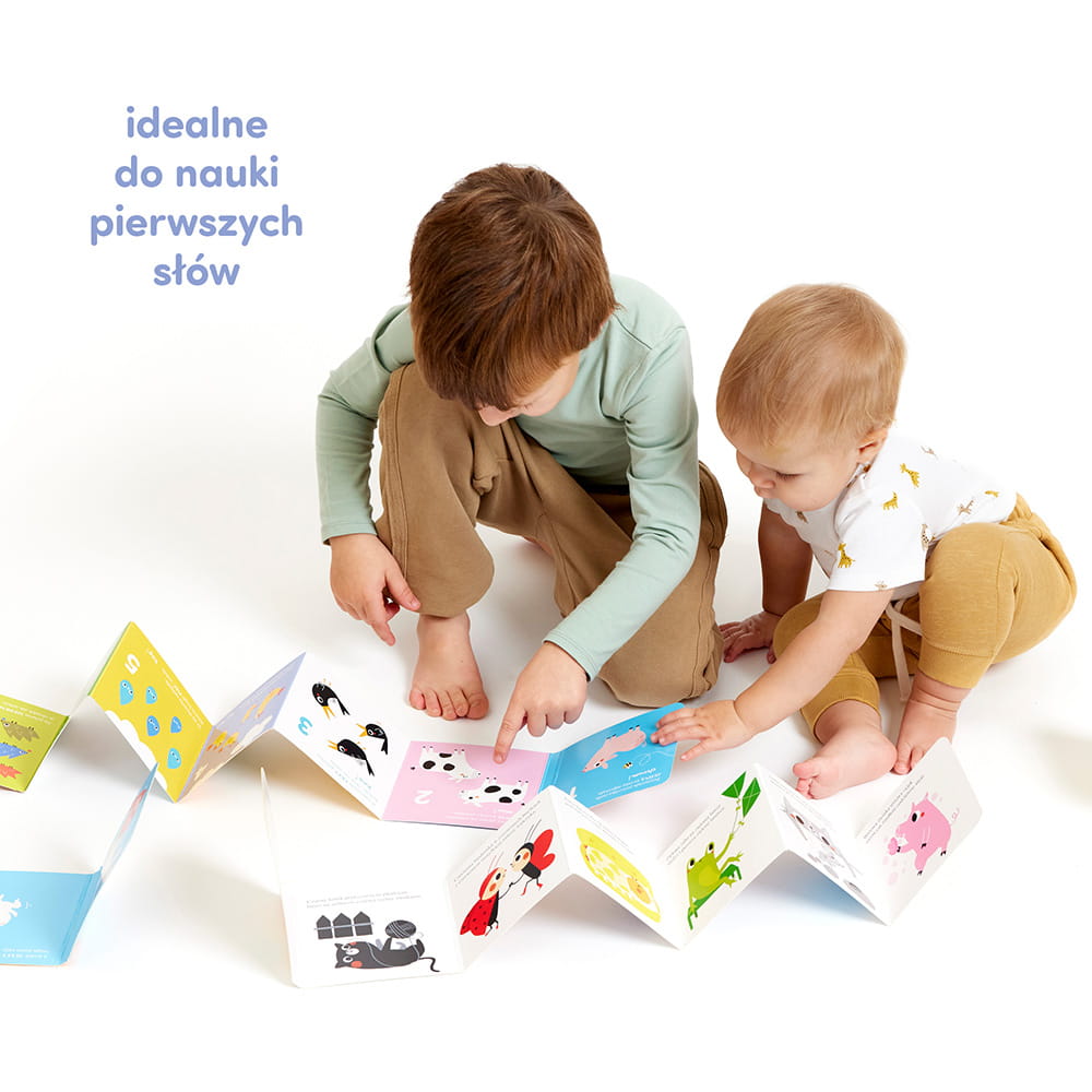 W edukacyjnym zestawie znajdziecie 4 długie książeczki harmonijki. “Kolory”, “Mały czy duży”, “Co do czego” i “1, 2, 3, liczymy” w przyjazny sposób przedstawiają lubiane i nowe, inspirujące maluchy tematy.