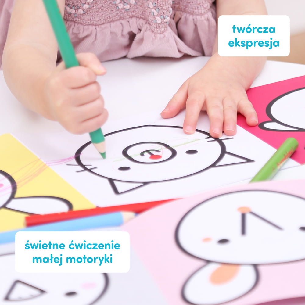 Tematyka i urocze obrazki zachęcają maluchy do sięgania po kredki i podjęcia pierwszych prób rysowania. Maluchy potwierdzają: kreatywny zestaw to doskonały pomysł na pierwsze kolorowanki.